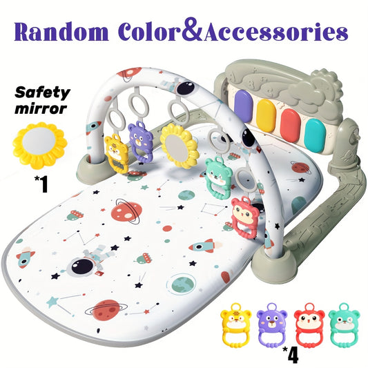 Colorful Musical Astronaut Play Mat with Animal-Themed Accessories - Soft Padded Activity Center for Youngsters, Ideal Holiday Gift, Polyester, Gray/Green, Interactive Youngsters Mat | Colorful Nursery Decor | Safe Youngsters Materials, Space Toys