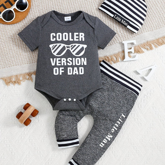 A Three-Piece Set Consisting of a Letter Print Short-Sleeve Top, Pants, And a Hat, for Outdoor
