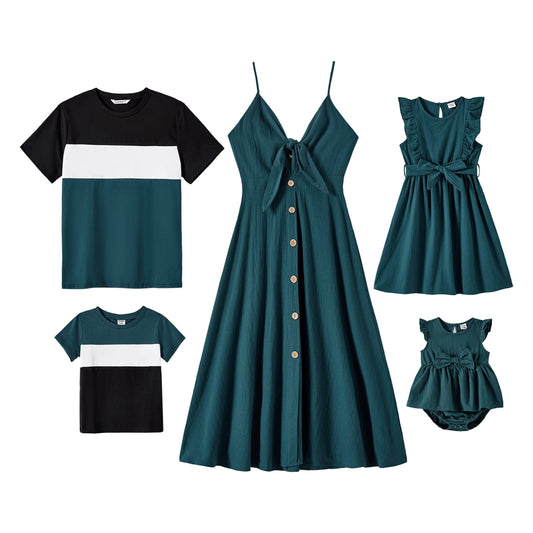 PatPat Family Matching Outfits Mommy and Me Dress Girl Dresses and Colorblock Short Sleeve T-shirts, Baby Girl 12-18M