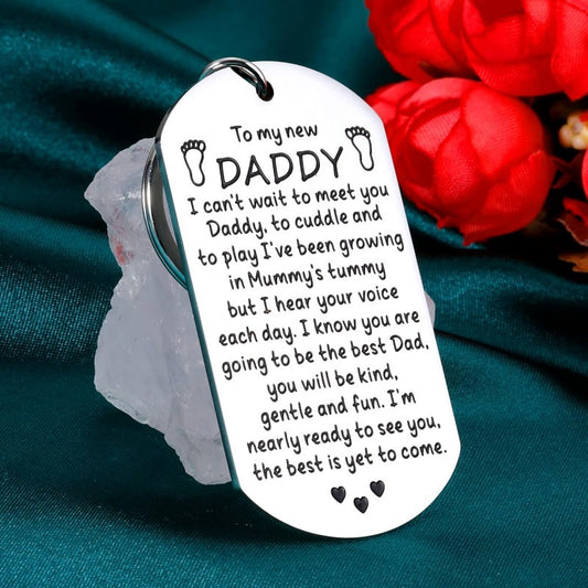 1pc New Dad First Fathers Day Keychain Gifts For Dad Men Him Husband From Unborn Baby Son Daughter Bump Wife Future Daddy To Be - Personalized - For Birthday, Christmas, Valentines Day, Baby Announcements, Pregnancy - Perfect Gift for Expecting Fathers