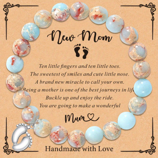 Chic Blue Stone Beaded Bracelet - Perfect Gift for Mom on Valentine's, Birthday, Mother's Day & Thanksgiving with Gift Card Included