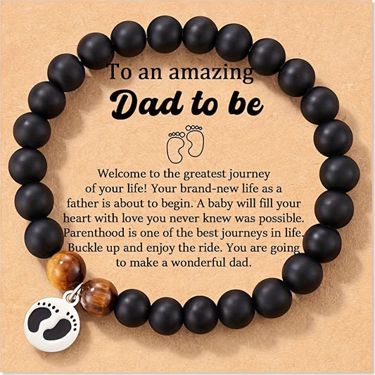 8mm Frosted Black Stone Beaded Bracelet with Engraved Footprint Charm - Perfect New Dad Gift for Father’s Day, Birthday, or Christmas - Stylish & Thoughtful Keepsake for New Fathers, Sentimental Keepsake | Beaded Wristband | Meaningful Inscription, Father