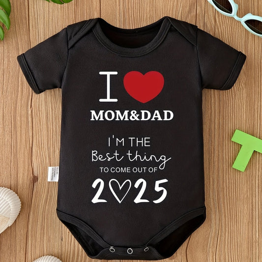 ACTFLASH 'I Love Mom & Dad' Printed Baby Bodysuit - Soft Polyester Short-Sleeve Romper for Newborns, Summer Casual Gift with Heart & Text Design, Casual Baby Wear|Affectionate Babywear|Easy Dressing Infantwear, Baby Clothes, Perfect for Outdoor
