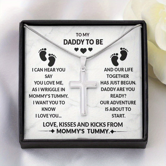 Men's Classic Cross Stainless Steel Necklace + Gift Box + Card Set Birthday Christmas Father's Day Gift For Dad