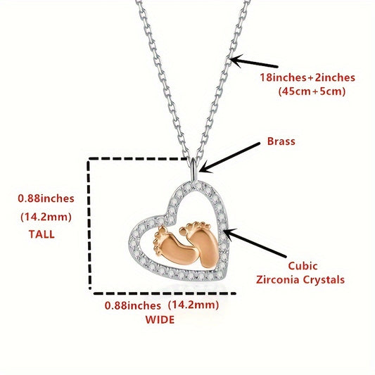 Amazing Mama-to-Be Heart & Youngsters Feet Pendant Necklace - Dual-Tone Copper with Cubic Zirconia, Perfect Christmas or Mother's Day Gift with Card and Box, Plating, Text Gift Card, Bohemia Style