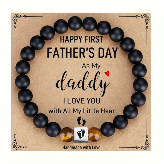 1pc Tiger Eye Stone Beaded Bracelet for New Dads, Fashion Elastic Adjustable Wristband with Blessing Card, Father'S Day & First Father'S Day Gift, Men'S Memorial Jewelry
