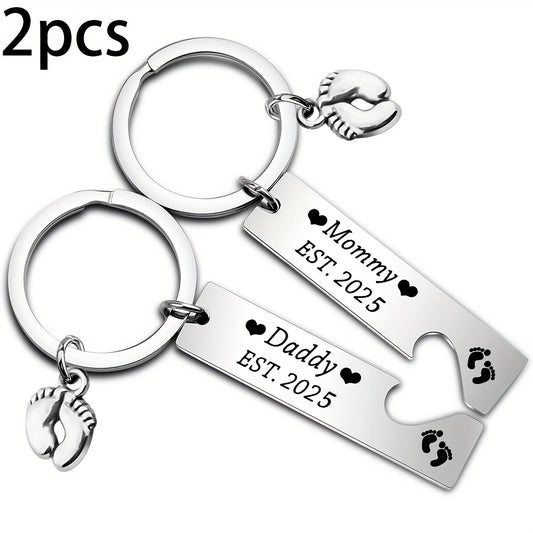 2pcs/set Long Strip Stainless Steel Keychain Pregnancy Announcement Gift Dad & Mom Est 2023 Keychain Set New Parent Gifts First Time Gift Mom And Dad Gifts