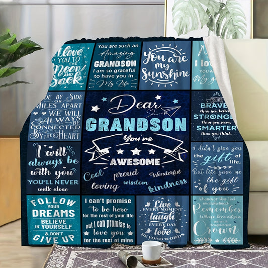 1PC blue letter patchwork pattern printed blanket, contemporary style blanket, soft and comfortable blanket, travel sofa bed, office home decoration, birthday gift blanket, available for boys, girls, adults, all seasons