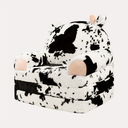 Comfy Toddler Chair, Cartoon Animal Kids Sofa Chair Fold Out to Lounger, One-Click Conversion, Memory Foam Couch with Soft Plush, Machine Washable, for Girls & Boys Age 18 Months And Up, for Playroom & Nursery, Perfect for Kids' Party Favors & Relax, Idea