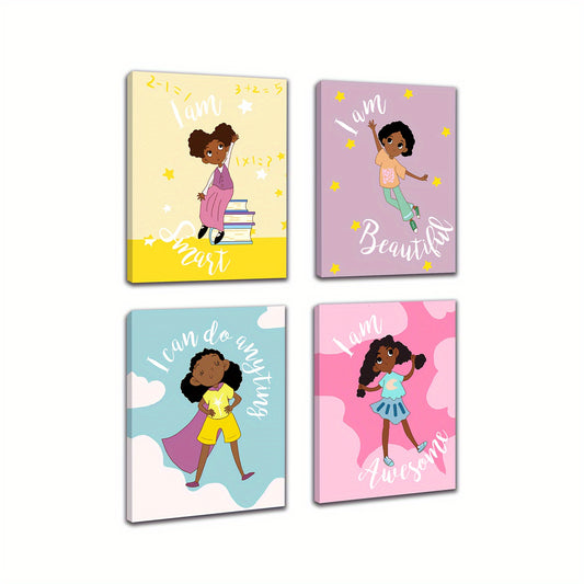 Girls Room Decor Cartoon Motivational Girls Framed Posters Inspirational Art Paint for Nursery Kindergarten Classroom Room Wall Decorations 8 x 10 Inch