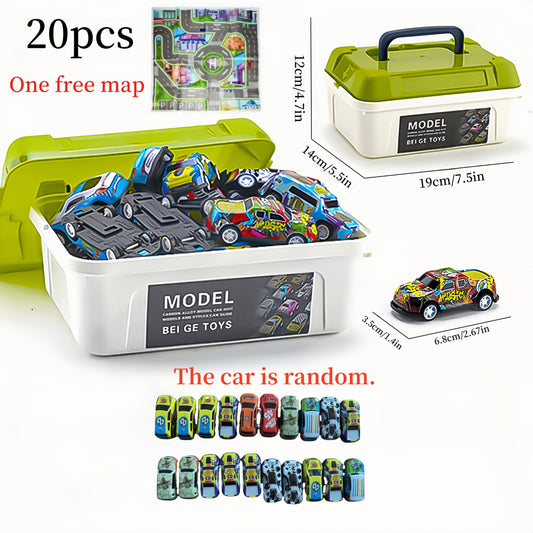 A 56pcs Alloy Toy Car Set with Storage Box And Foldable Play Mat with Pull-back Function, Durable Metal Vehicle, Colorful Mix, Children's Educational And Entertainment, Halloween, Christmas Gifts