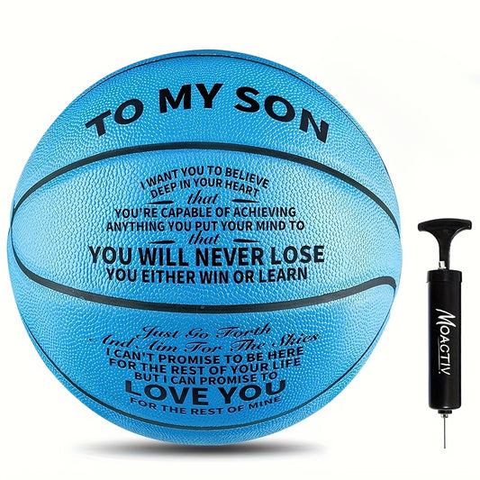 Moactiv Engraved Blue Basketball with Heartfelt Message for Grandson - Durable PU Material, Perfect Gift for Birthdays, Anniversaries & Christmas, Indoor/Outdoor Use, Standard Size