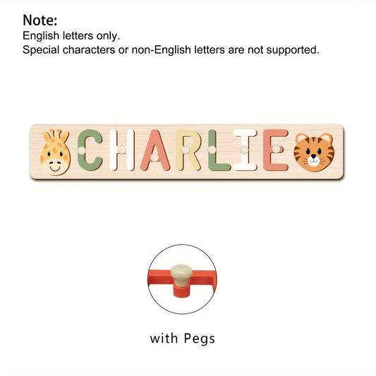 Customizable Wooden Name Puzzle with Animal & Ball Elements, Educational Toy for Boys & Girls, Baptism & Birthday Gift, Christmas Present, Only Supports English Letters, 2 Color Options, Board Game for Kids