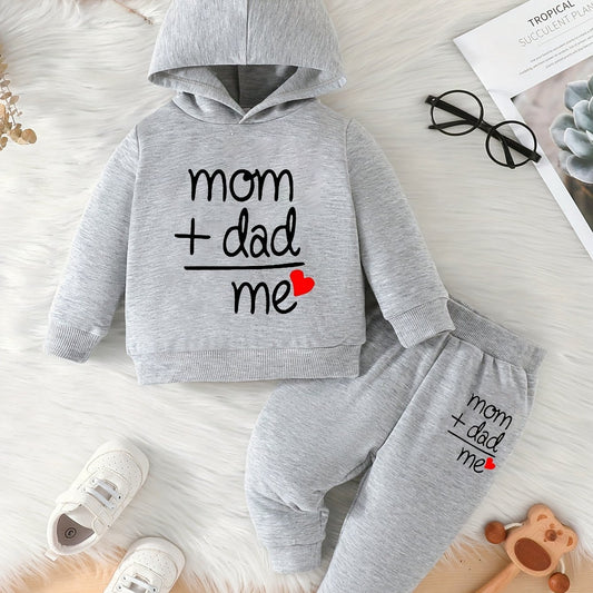 Two-piece Youngsters Boys Fashion Casual Spring and Autumn New Valentine's Day Father's Day Mother's Day Love Love Dad Mom Letter Pattern Long Sleeve Hoodie and Pants Combination Set, Perfect for Outdoor