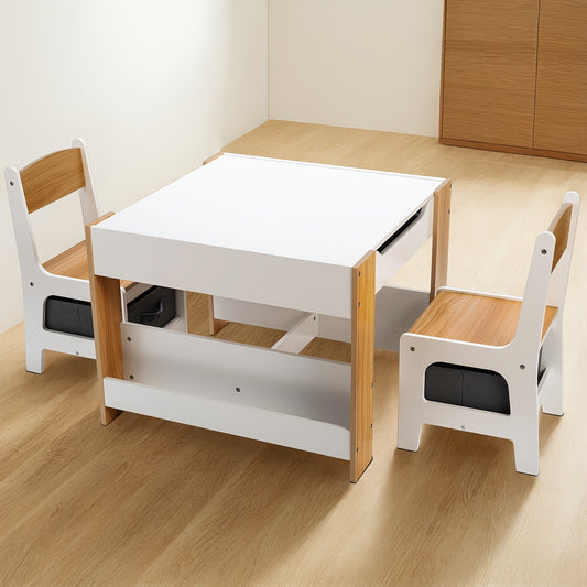 Kids Table And Chairs Set With 1 Table And 2 Chairs, Toddler Table And Chair Set With Bookcase, Children'S Dining Table, Children'S Book Table Chair, Entertainment Table, Toddler Table And Chair With Storage Drawer For Reading, Drawing, Eating