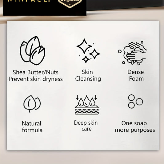 3pcs Winface African Black Soap Bars, 100g Each - Shea Butter & Coconut Oil Infused for Deep Skin Cleansing, Alcohol-Free, with Bamboo Charcoal Fragrance for All Skin Types