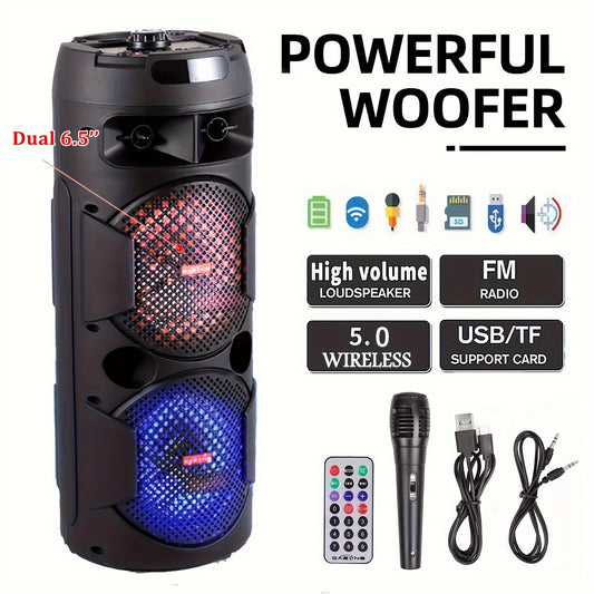 Portable Wireless PA Speaker System - Built In Rechargeable 1800mAh Battery Outdoor Wireless Party Speaker Portable PA System W/ Subwoofer, Wired Micphone, Party Lights, USB/AUX/FM Radio DJ