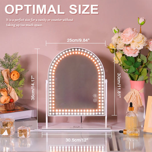 Fenchilin Arched Vanity Makeup Mirror with Lights Bluetooth Metal Tabletop White 12''x14''