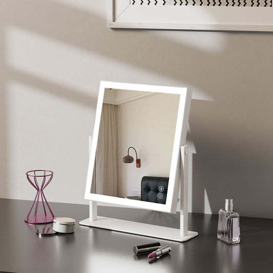 Fenchilin 12''x14'' Vanity Makeup Mirror with Lights Bluetooth Metal Tabletop White