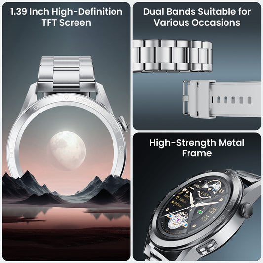 TOPVISION Smart Watch for Men Women, Fitness Tracker 100+ Sport Modes 2 Bands for Android iOS, Silver
