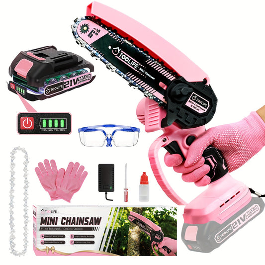Mini Chainsaw Cordless, 6 Inch Handheld Electric Portable Power Chainsaw, Battery Powered Chain Saw, Great For Tree Trimming Wood Woking & Cutting.Survival Outdoor Tools &Gadget For Man.Gardening Must Have Supplies &Equipment.Best Gifts For Dad, Him.