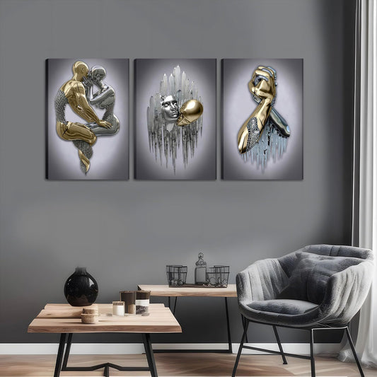 3pcs 2D high-definition waterproof wall art frame canvas painting modern art, 3-3D, visual effects, decorative art, abstract graphics, architectural art, home decoration,