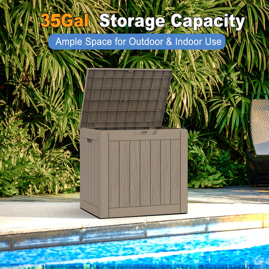 35-Gallon Large Outdoor Storage Deck Box, UV & Water-Resistant, Weatherproof Resin Organizer with Lockable Lid for Patio Furniture, Pool Accessories, Garden Tools, and Toy Storage - Ample Space for Indoor & Outdoor Use, Patio Furniture Organizer, Box,Cabi