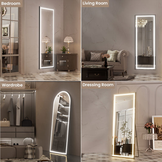 BEAUTYPEAK 64" x 21" LED Arched Full Length Mirror Standing Floor Mirror,White