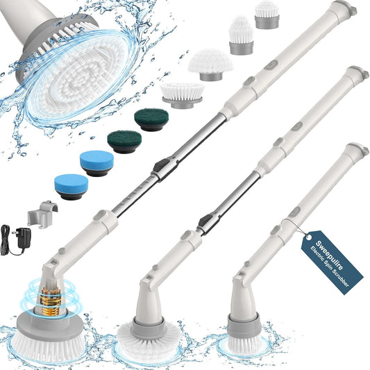 Sweepulire Electric Spin Scrubber SW1, Shower Scrubber with Long Handle, 2 Spin Speeds, Electric Scrubber for Cleaning with 8 Replacement Brush Heads, Bathroom Scrubber for Tub, Shower, Tile, Floor
