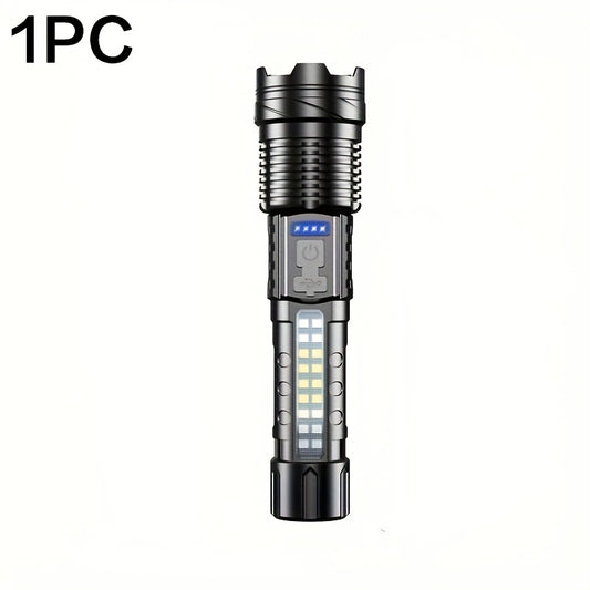 1pc Ultimate Rechargeable LED Flashlight - 5 Lighting Modes, Waterproof, Long-Lasting Power - Durable Brightness for Emergencies, Camping, Hunting, Outdoor Adventures - Portable & Rugged Grip