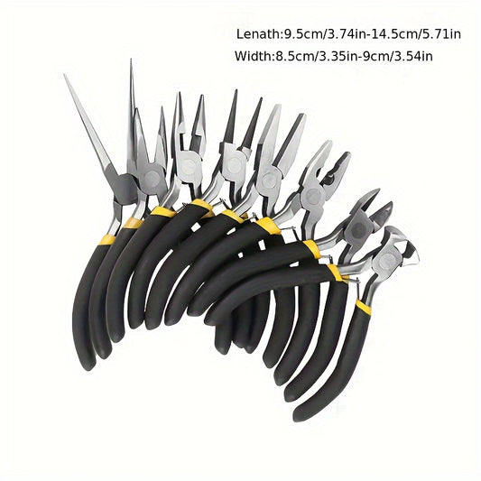 8-Pack Professional Multi-Functional Pliers Set, Ergonomic Design, 4.5-inch, Includes Mini Bender, Needle Nose, Combination, Ball Head, Wire Stripper, No Power Required, Metal Construction, Home Improvement Manual Tools