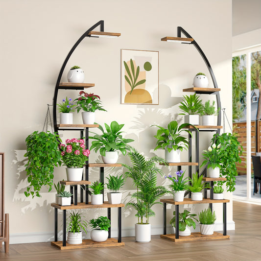 Tall Plant Stand Indoor with Grow Light, 7 Tiered Metal for Plants Multiple, Large Holder Display Shelf, Half-Moon Shape Rack Living Room, Patio, Balcony