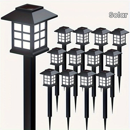 24pcs/12pcs/6pcs Outdoor Warm Light Solar-Charged Landscape Garden Lights, Suitable for Paths, Courtyards & Decks