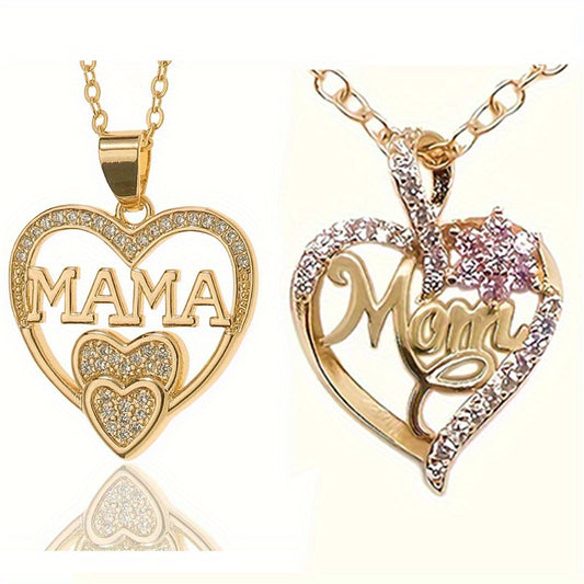 2pcs/set Elegant And Fashionable Love Mom Pendant Necklace, Perfect As A Gift For Birthdays Or Any Special Occasion