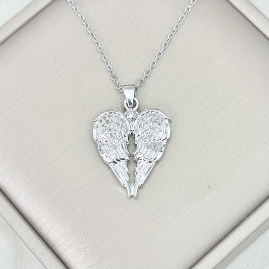 1pc Elegant Angel Wing Heart Shaped Pendant Necklace, Exquisite Fashionable Elegant Versatile Banquet Party Daily Wear Jewelry Gift For Women