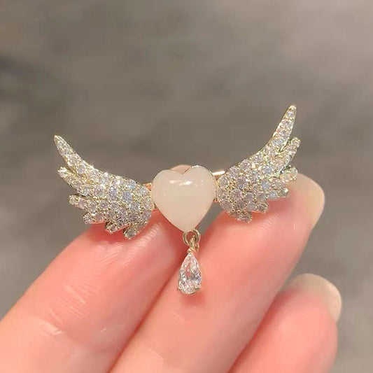 1pc Angel Wings Cat'S Eye Stone Women'S Rhinestone Brooch Elegant And Stylish Pin, Perfect for Jackets, Coats, Sweaters And Dresses. Adds a Unique, Sophisticated Touch to Any Outfit. Ideal Gift for Valentine'S Day, Birthdays, Mother'S Day, Annive