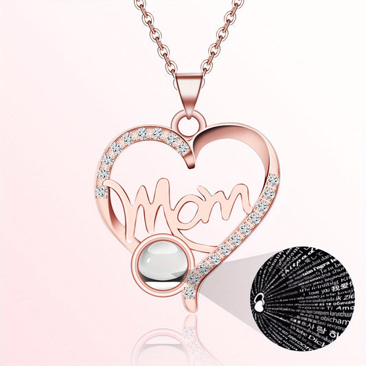 1PC/2PCS Exquisite Heart Projection Necklace, "I Love You" In 100 Languages, Lady Pendant Christmas Gift, New Year's Gift, Mother's Day Gift For Mom, Romantic And Cute Jewelry