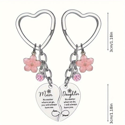 A Pair Of Cherish Mom And Daughter Keychain Pendants Stainless Steel Heart-shaped Combination Keychains, Heart-shaped With Inspirational Quotes, Suitable For Car Key Handbag Backpack Accessories, Perfect Mother'S Day Gifts From Daughter To Mother