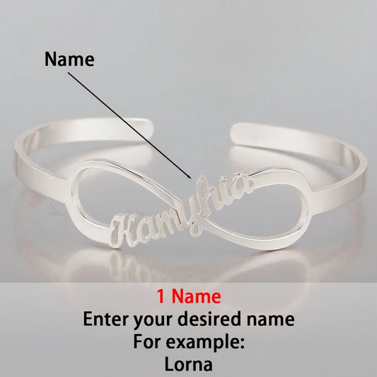 Customized infinity opening bracelet with 1-6 English names personalized Women's 18K gold-plated bracelet, a gift for family and friends, very suitable for holidays, birthdays, anniversaries, graduation ceremonies, Christmas