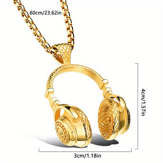 A Trendy Rock Music-inspired Golden Earphone Pendant, A Stylish And Delicate Titanium Steel Couple Necklace, A Cool Earphone-shaped Pendant, Suitable For Daily Parties, Bars, And Disco Fashion Accessories.