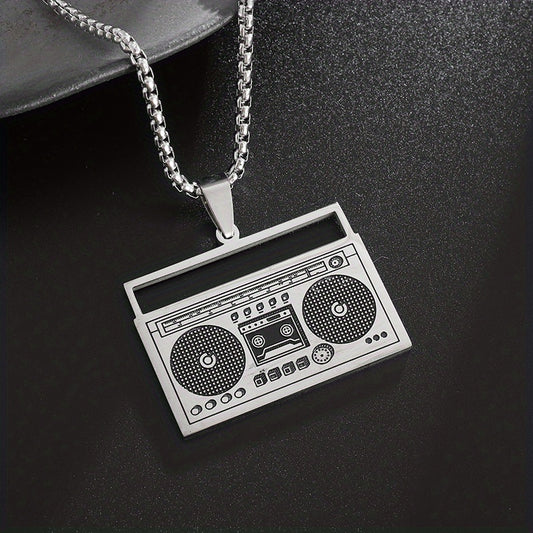 1pc Stainless Steel Radio Pendant Vintage Fashion Player Recorder Necklace for Women and Men Personality Hip Hop Rock Street Party Jewelry