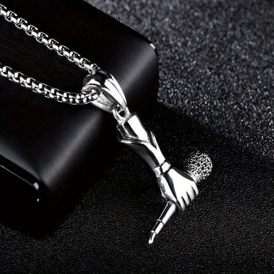 1pc Stainless Steel Mini Handheld Microphone Pendant Necklace, Fashion Style, White K-Plated, with Rhinestone Detail, for Men and Women, Singer Jewelry Accessory