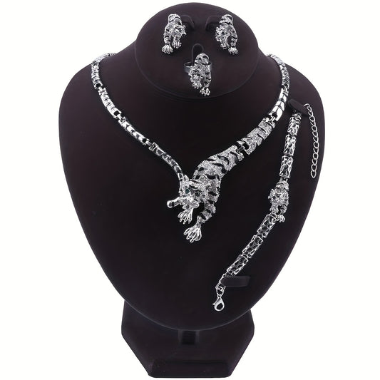 Luxury Tiger Rhinestone Jewelry Wedding Party Costume Design Necklace Earring Ring Bracelet Set