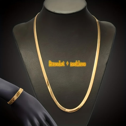 [Luxurious Hip Hop Set] Exquisite Luxurious Hip Hop Set - Fashionable Necklace And Bracelet Combination - Durable Golden Snake Chain Design, Suitable For Sparkling At Parties, Perfectly Enhancing Style As A Gift For Family And Friends