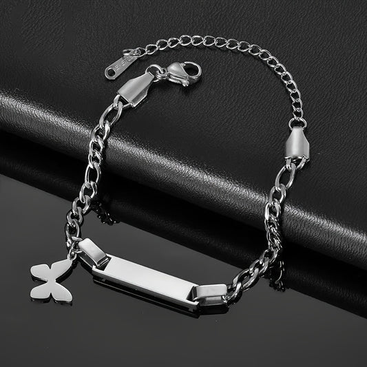 Personalized Butterfly Pendant Titanium Steel Bracelet Custom DIY Engraved Name Anniversary Birthday Gift for Family Members Best Friend Valentine's Day Gift