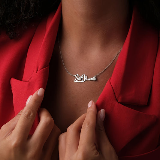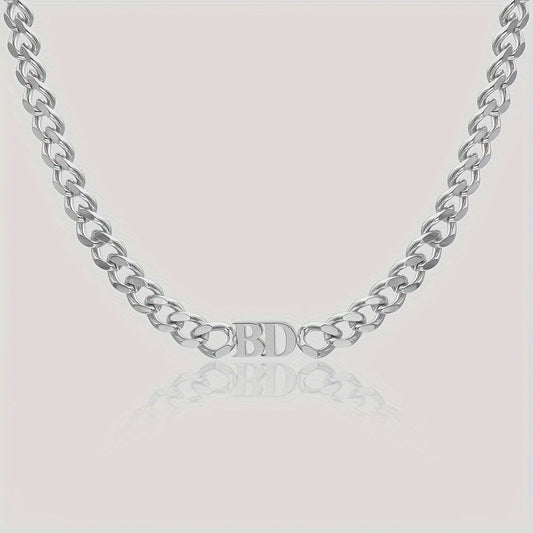 1pc Custom Stainless Steel Name Necklace – Personalized Frosted Letter Pendant with Sparkling Accents, Unisex Cuban Link Chain Jewelry Gift for Casual Attire or Special Occasions, Gift Item Jewelry | Bohemian Chic | 18K Golden Plated, Personalized Necklac