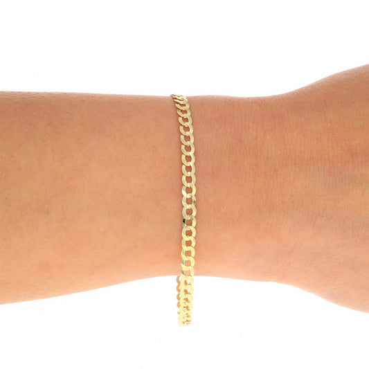 Nuragold 10k Real Yellow Gold Solid Cuban Curb Link 4mm Chain Bracelet (7"-9") Italian Jewelry for Men & Women