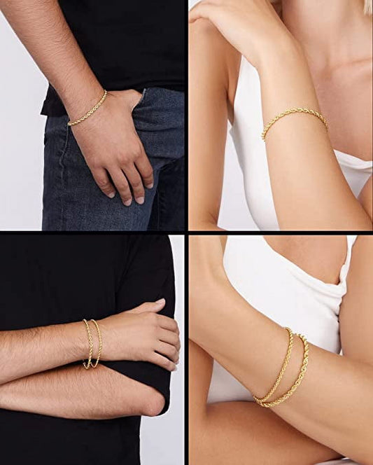 Jewelry Atelier Gold Filled Chain Bracelet Collection - 14K Solid Yellow Gold Filled Rope Chain Bracelets for Women and Men with Different Sizes (3.8mm)