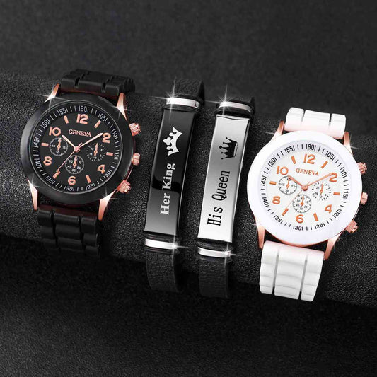 4pcs/set Couple'S Fashion Simple Quartz Wristwatch and Bracelet Set, Silicone Band, Round Case, Non-Rechargeable Battery - His & Hers Matching Watch Kit