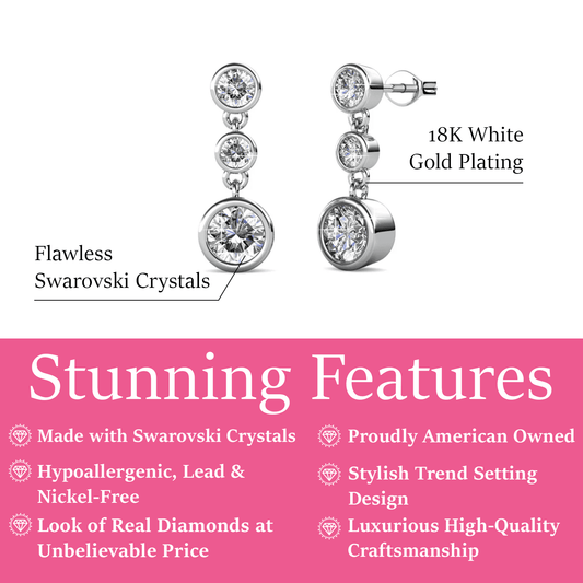 Cate & Chloe Bailey 18k White Gold Plated Dangle Earrings with Swarovski Crystals, Gift for Women